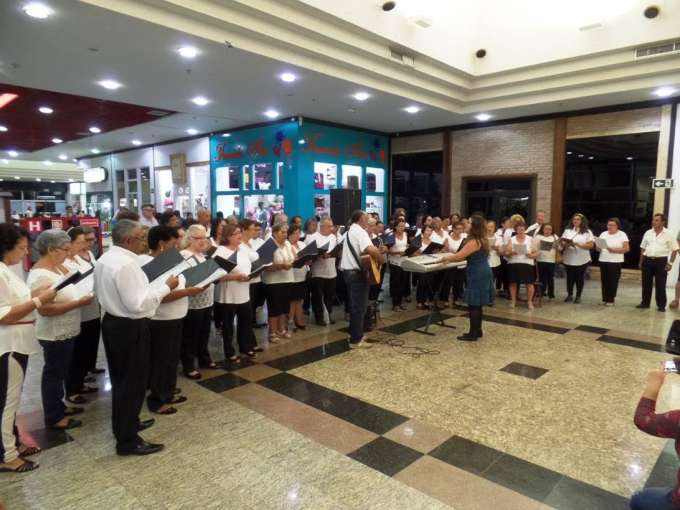 Cerca de 60 idosos que fizeram apresentações musicais no Shopping