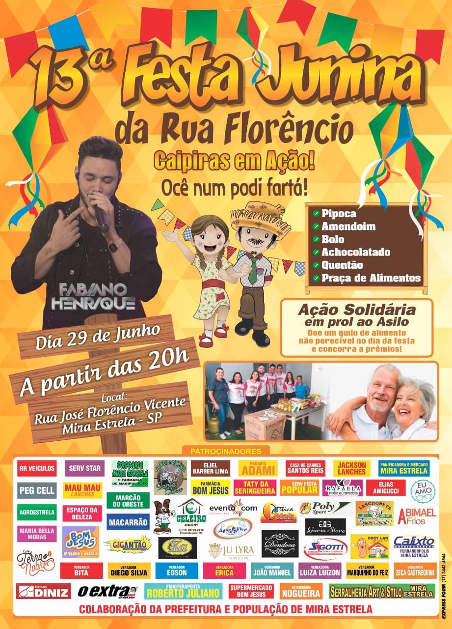 Evento será realizado na Rua José Florêncio Vicente, em Mira Estrela