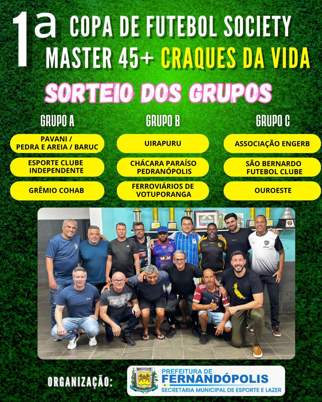 1ª Copa Society Master 45+ define grupos; bola rola dia 10
