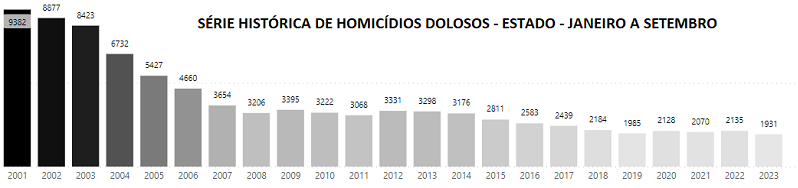 De janeiro a setembro, as mortes intencionais caíram 9,6% em relação a 2022