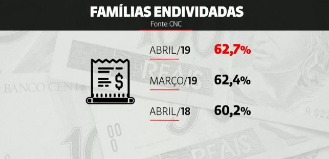 No mês passado, o percentual de famílias brasileiras endividadas alcançou 62,7%