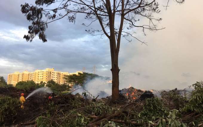 Bombeiros combatem incêndio em ponto de coleta de entulho