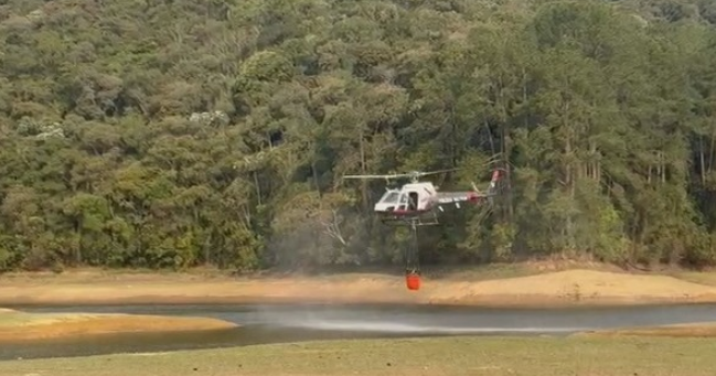 Helicópteros da PM auxiliam no combate aos incêndios em SP
