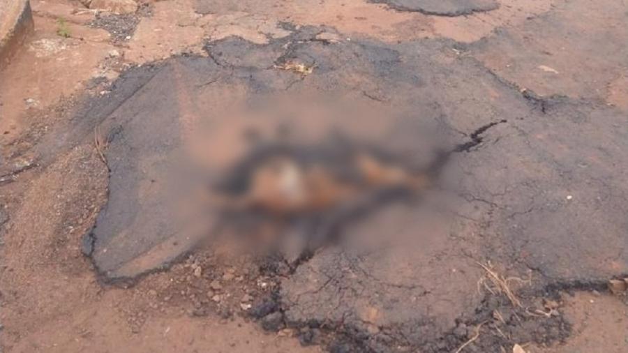Corpo de cachorro é asfaltado junto a buraco e revolta moradores