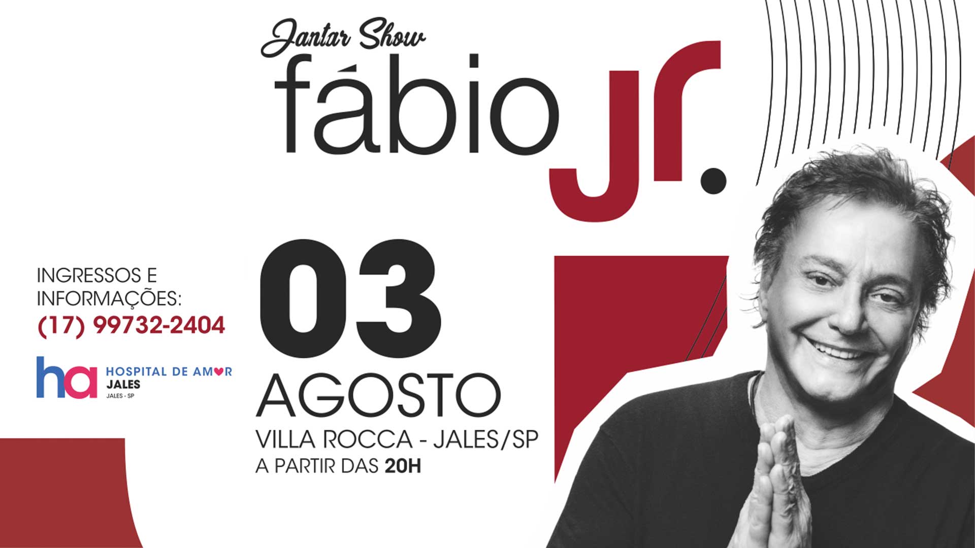 O show com Fábio Jr. é o retorno dos eventos em prol do Hospital de Amor Jales