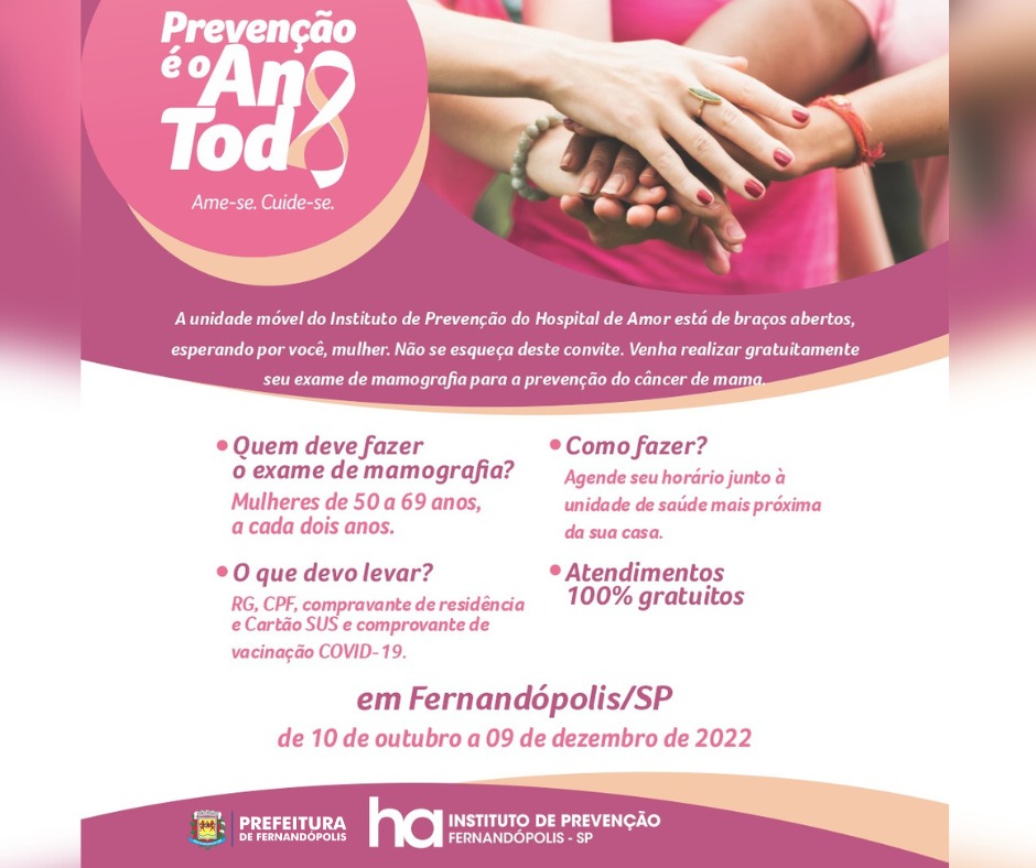 Unidade móvel estará no município a partir de 10 de outubro para mulheres de 50