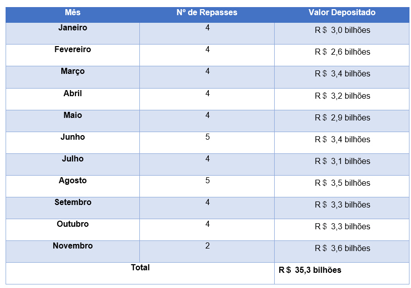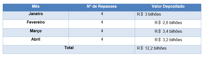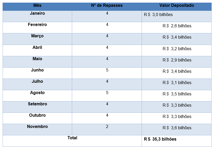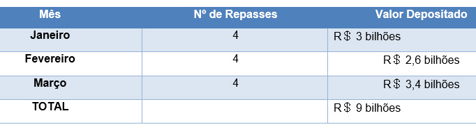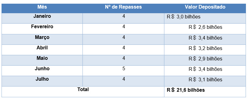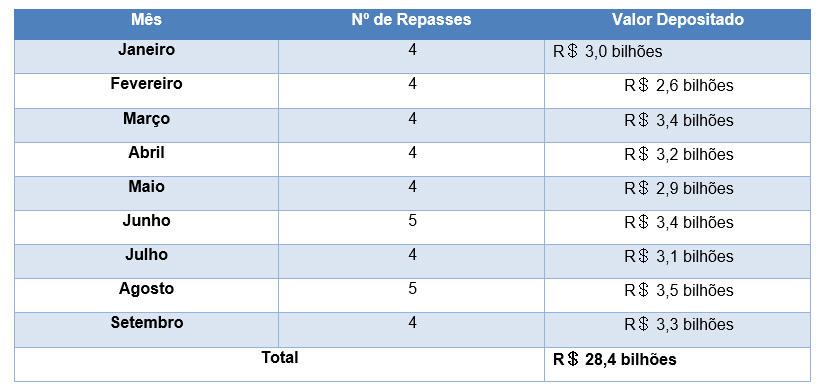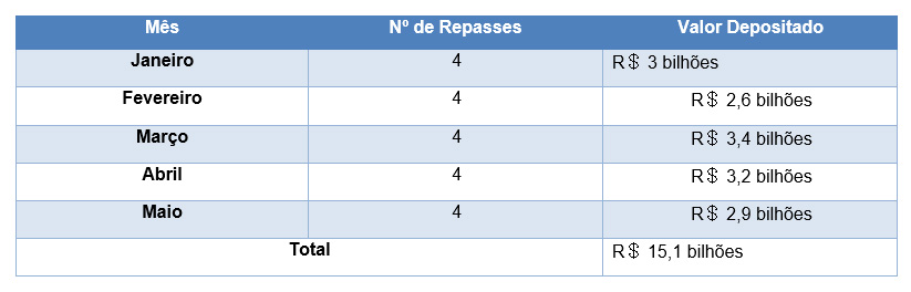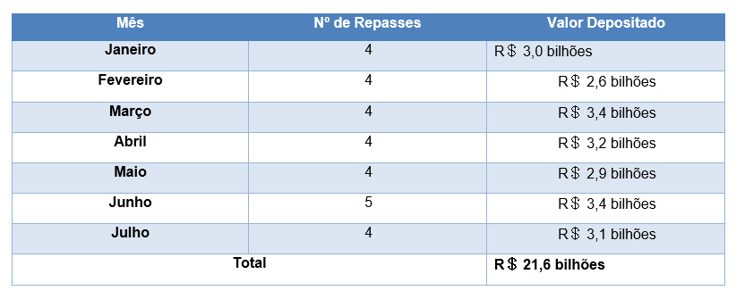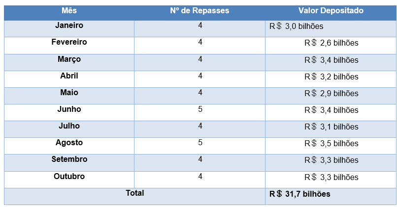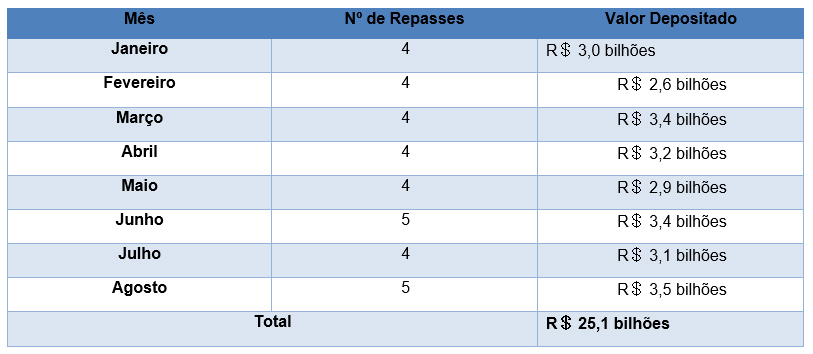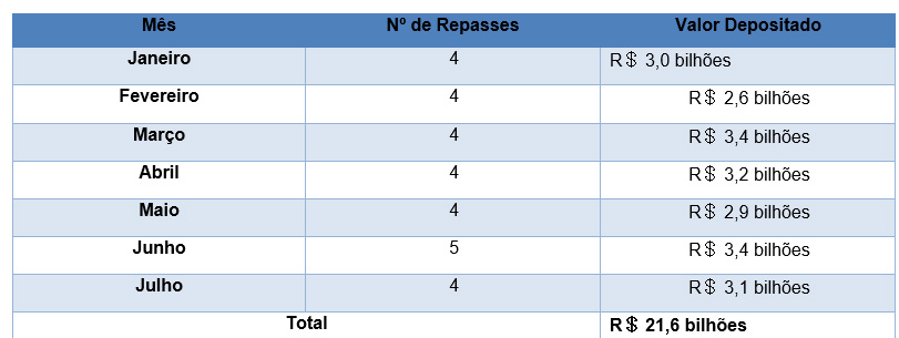 No último repasse do mês foi depositado R$ 1,6 bilhão às prefeituras