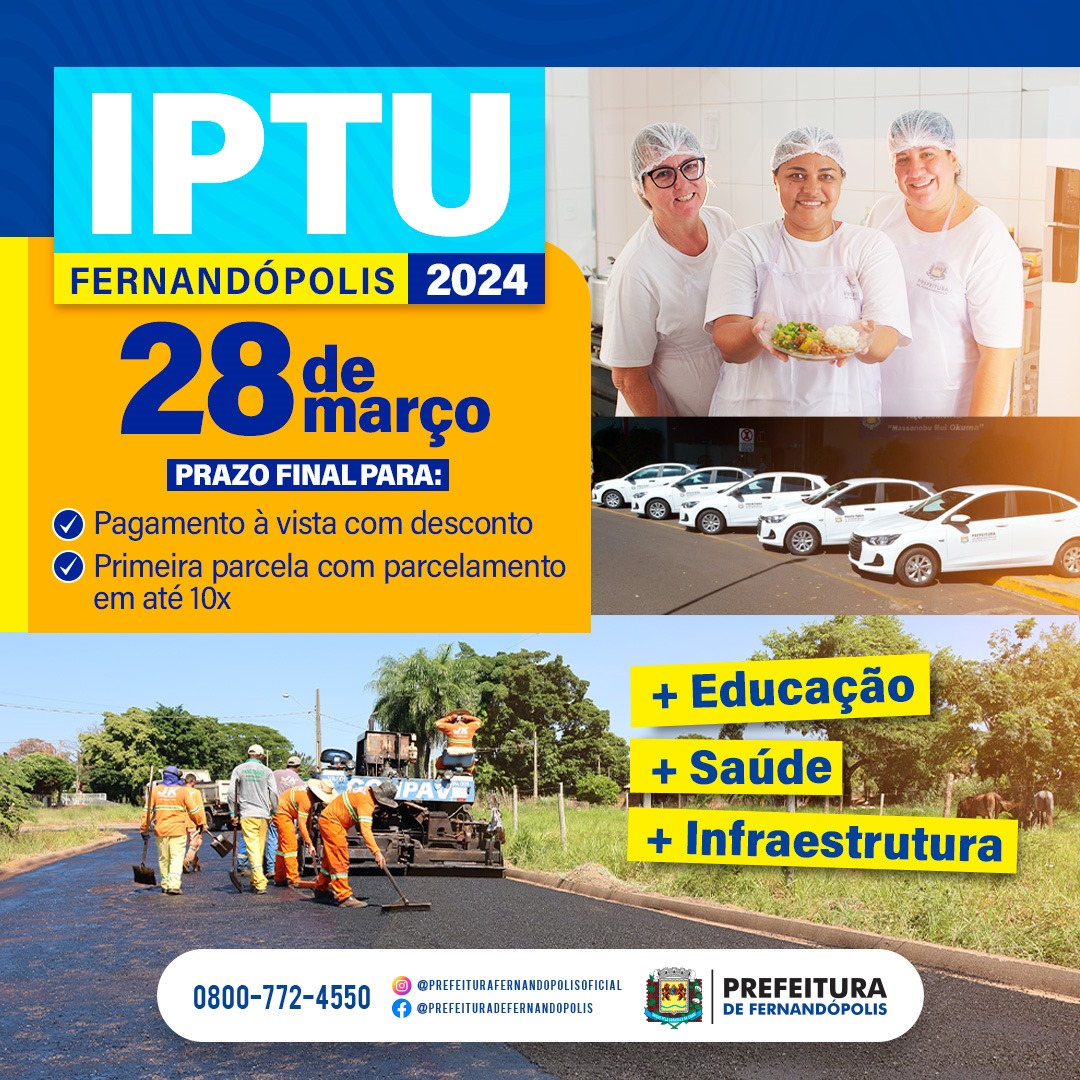 Em Fernandópolis, decreto adia pagamento do IPTU em março