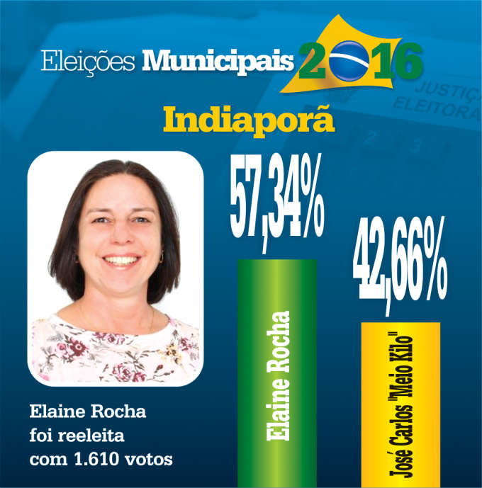 Elaine Rocha é reeleita em Indiaporã com 57,34% dos votos válidos