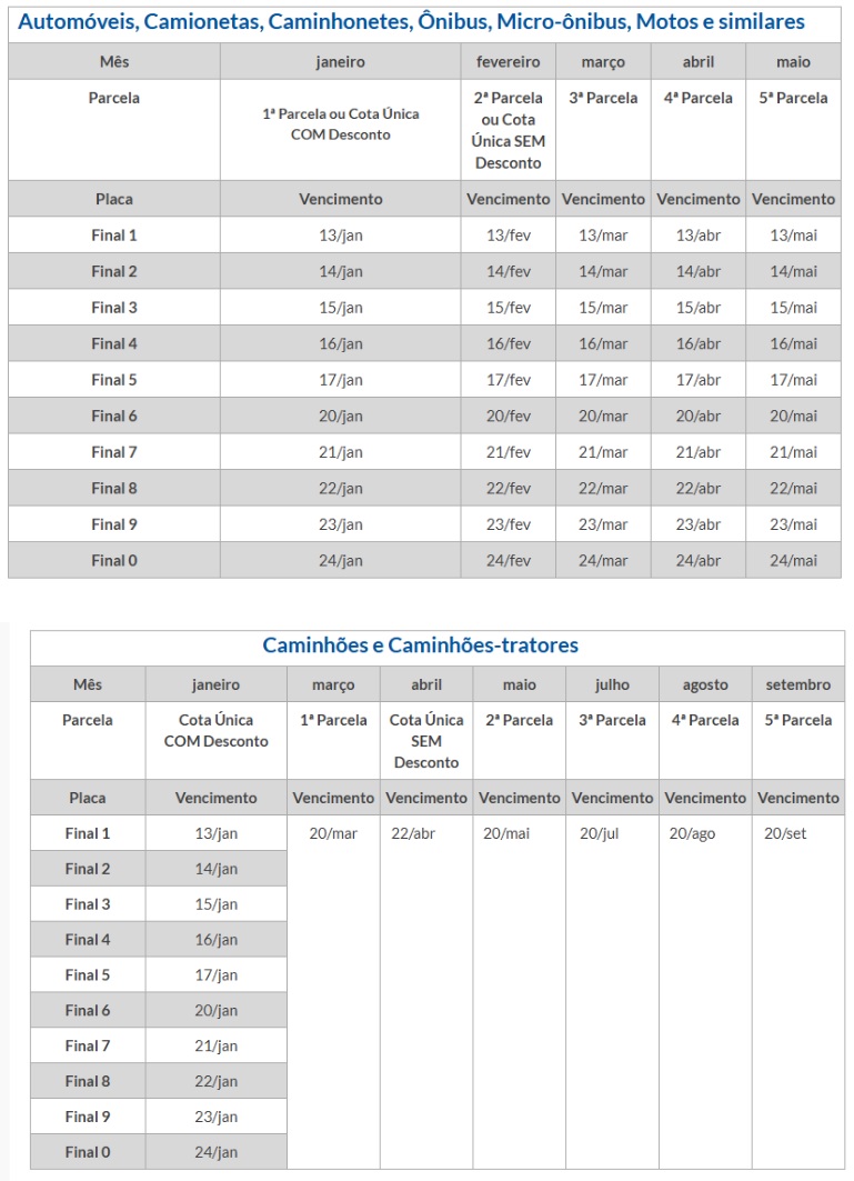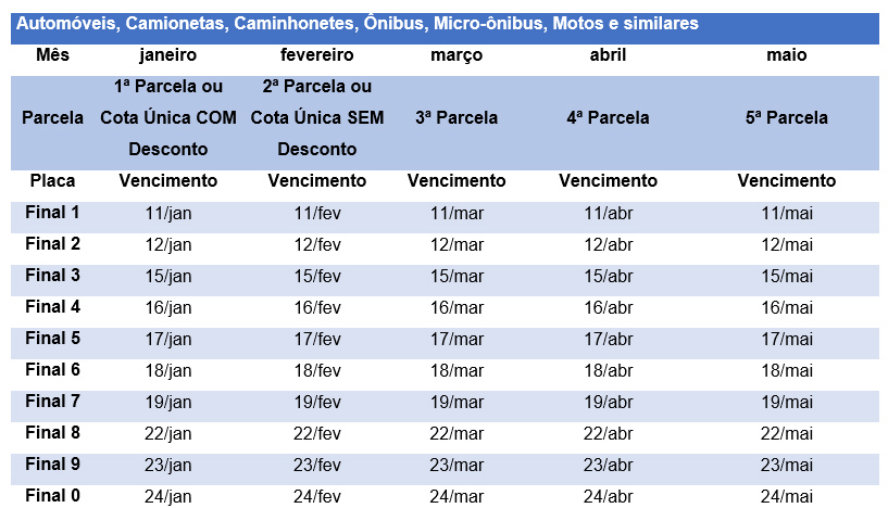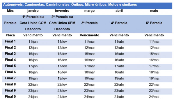 Vencimento tem início no dia 13 de janeiro em São Paulo