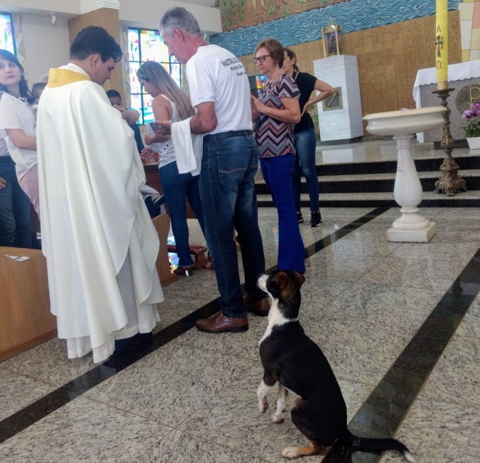 Cachorro que 'assiste' à missa e espera hóstia fica famoso na internet