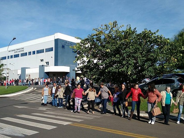 Durante a ação foi feita uma corrente de oração para que a unidade não feche