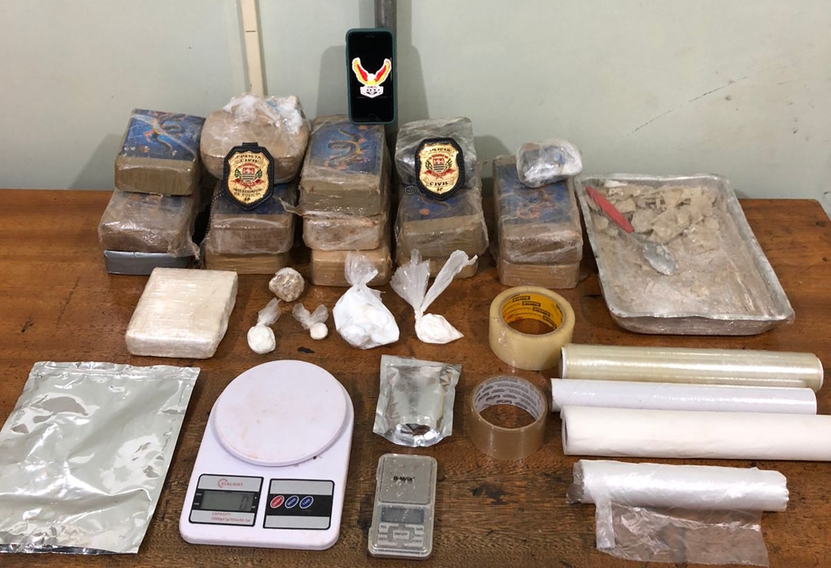Mais de 14 quilos de crack e cocaína foram apreendidos no local