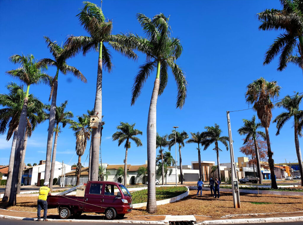 A prefeitura de Jales instalou ninhos artificiais em palmeiras da cidade