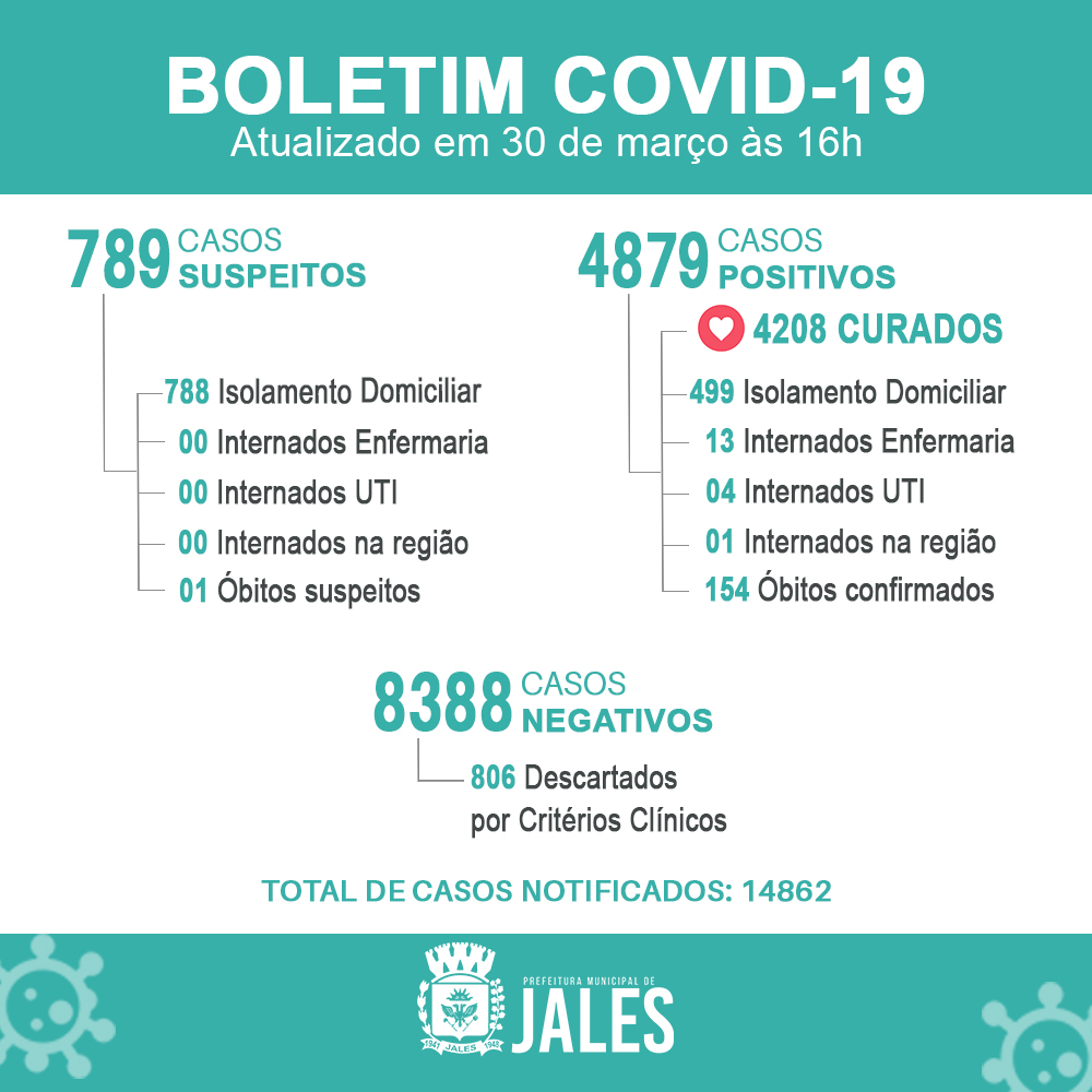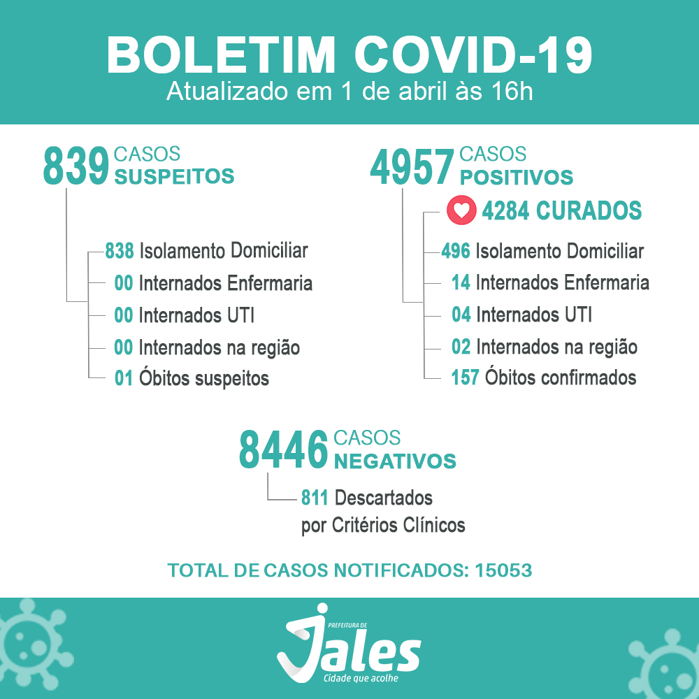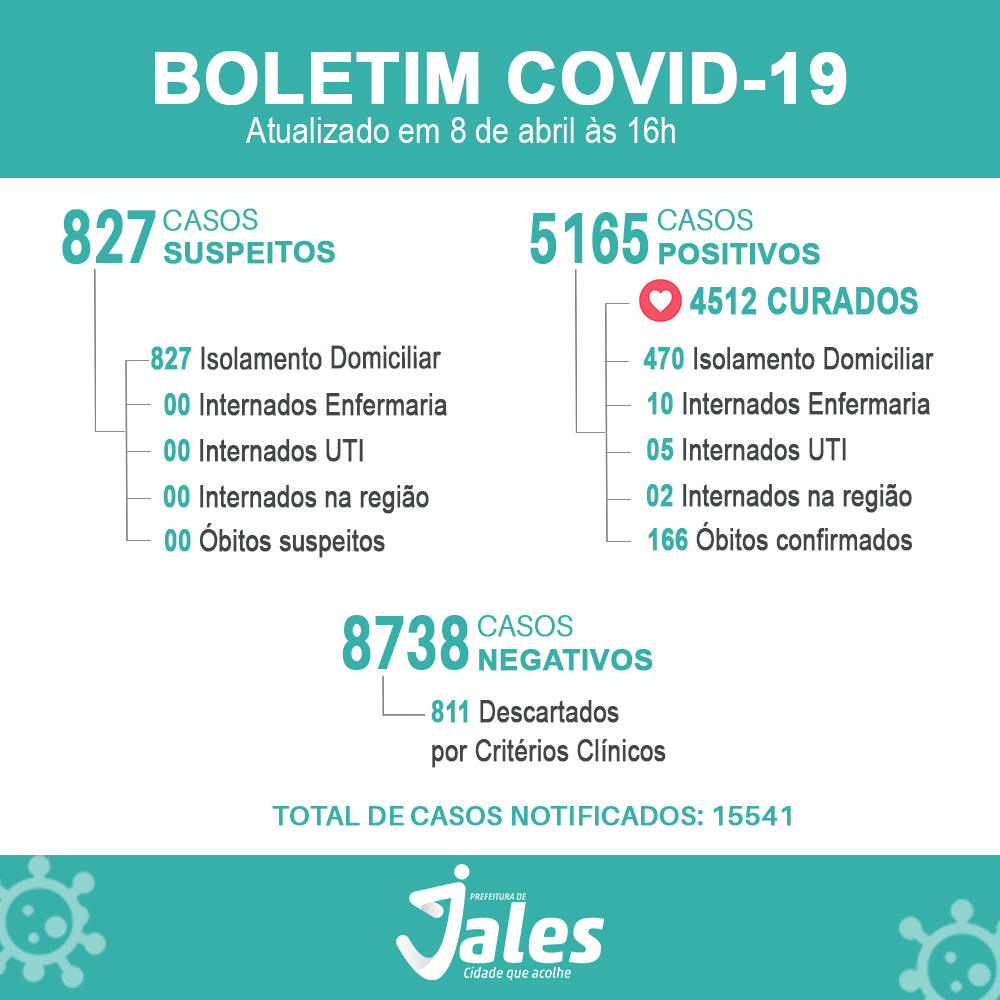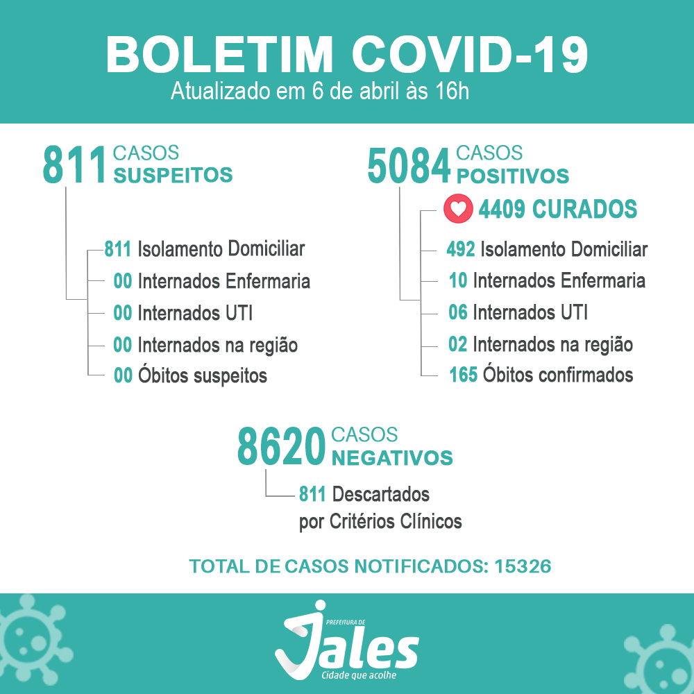 Jales registra 04 óbitos e 66 novos casos positivos de covid-19