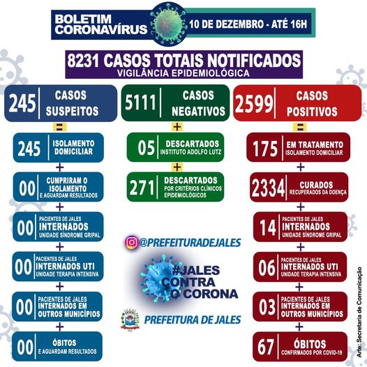 Jales registra 25 novos casos positivos de covid nas últimas 72 horas