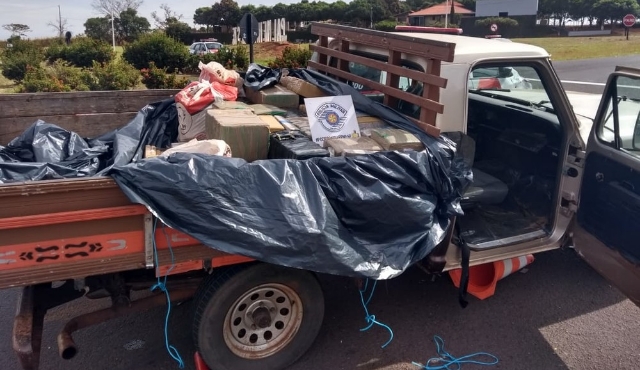 Caminhonete recheada com maconha bate em viatura da PM