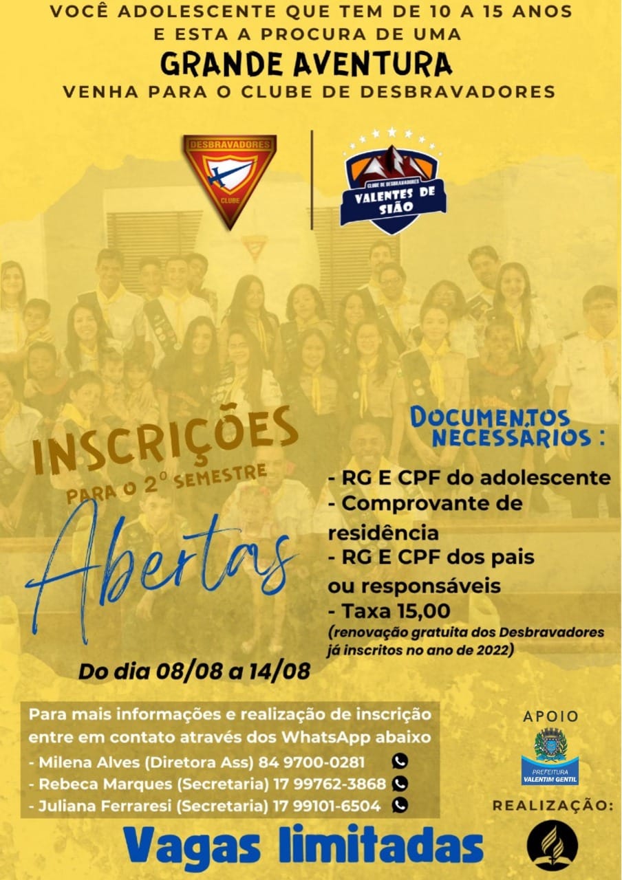 Clube dos Desbravadores abre inscrições em Valentim Gentil