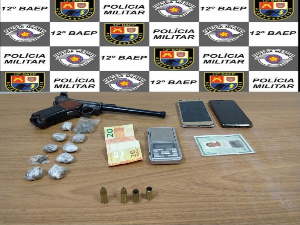 Equipe apreendeu arma, munições, drogas, dinheiro, celulares e balança