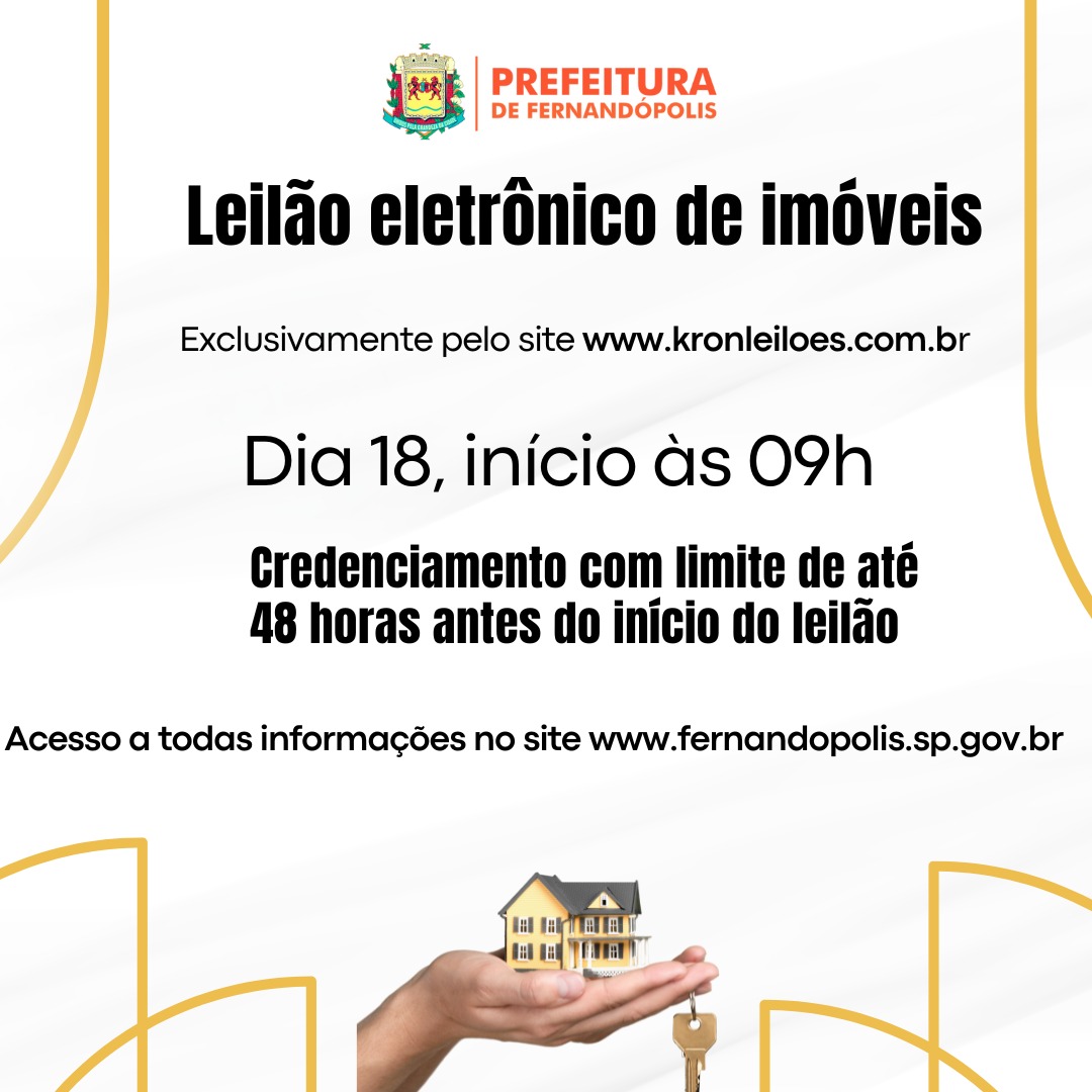 Leilão eletrônico de imóveis da Prefeitura acontece na segunda, dia 18