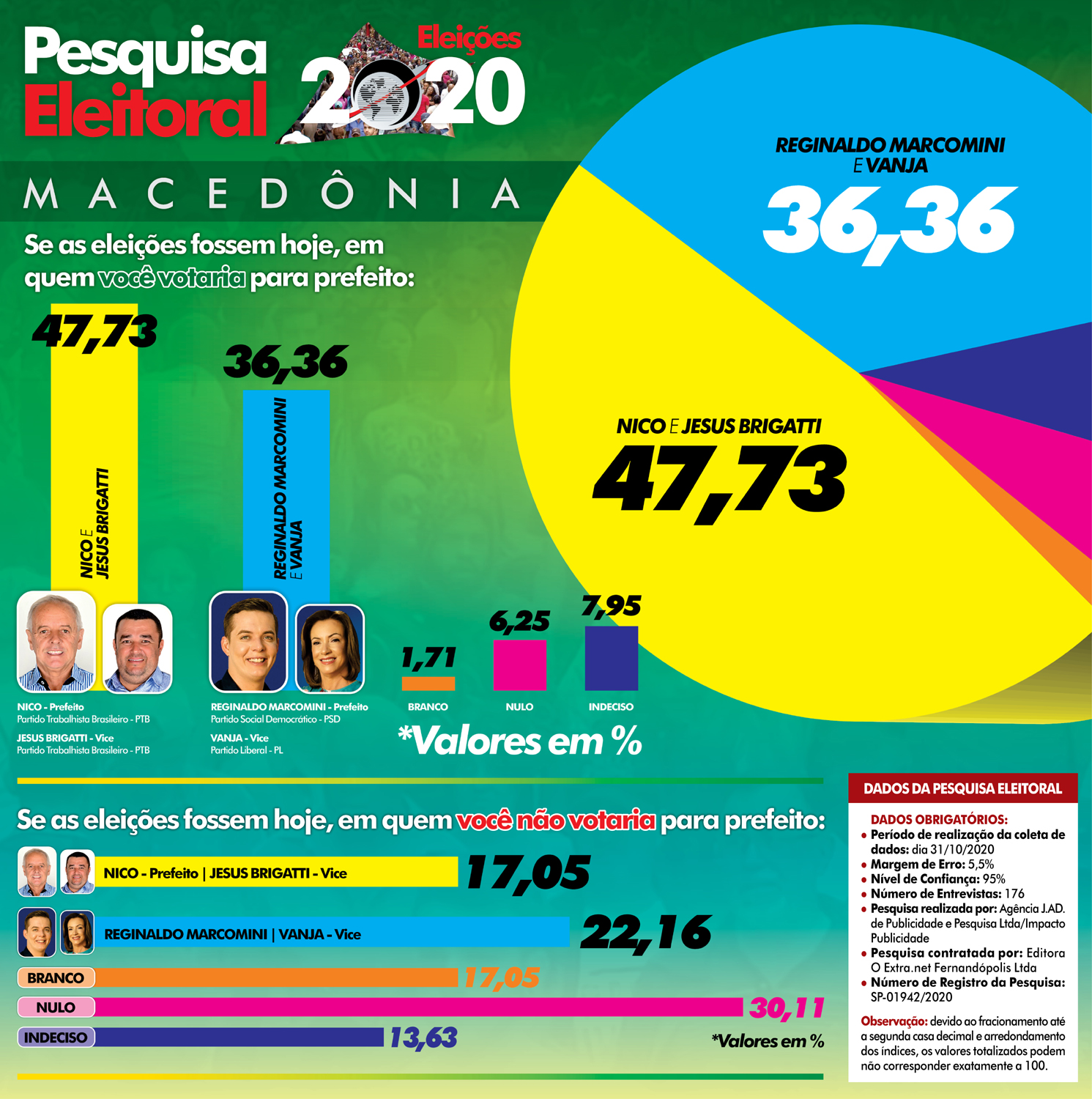 Disputa em Macedônia: Nico tem 47% e Reginaldo 36%