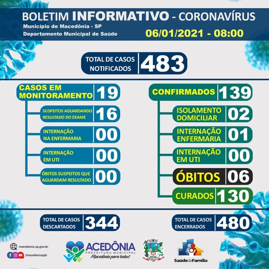 Com o novo óbito, o município chega ao total de 6 desde o início da pandemia