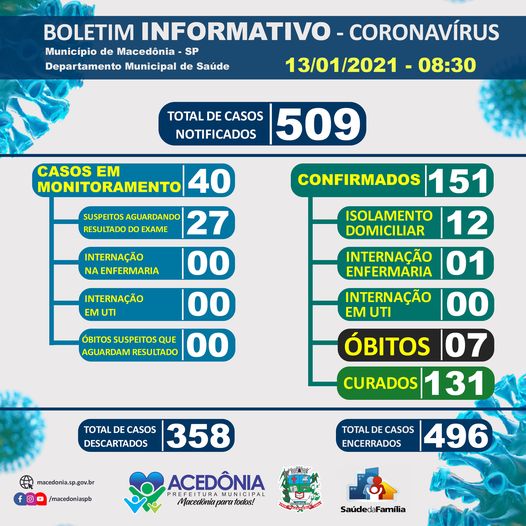 Com o novo óbito, o município chega ao total de 7 desde o início da pandemia