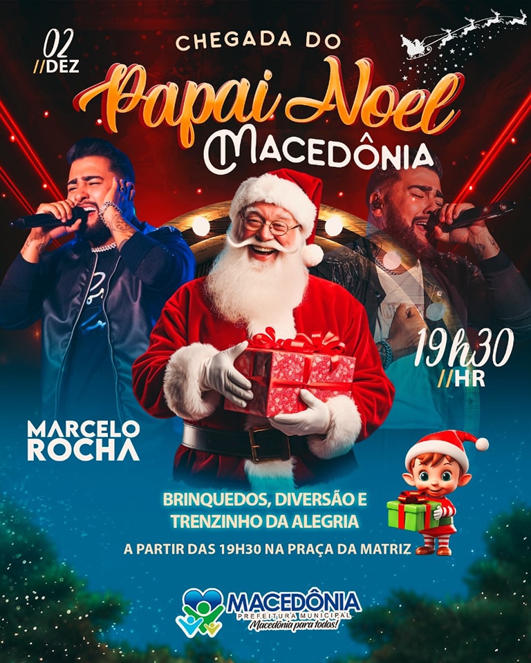 Macedônia realiza noite das Luzes de Natal com chegada do Papai Noel