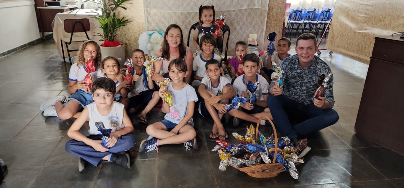 Os ovos forma entregues para crianças do fundo social e aos idosos do CCI