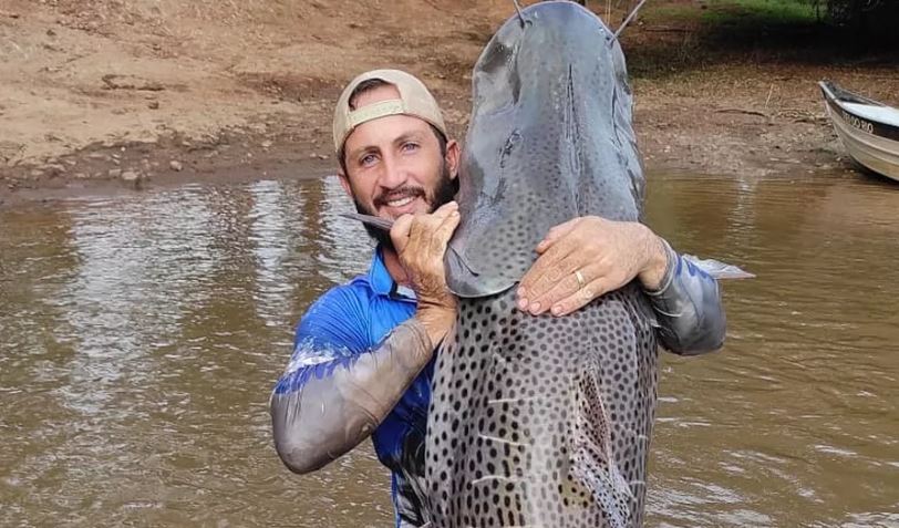 Agricultor pesca peixe de 1,75 metro e mais de 60 Kg no MS