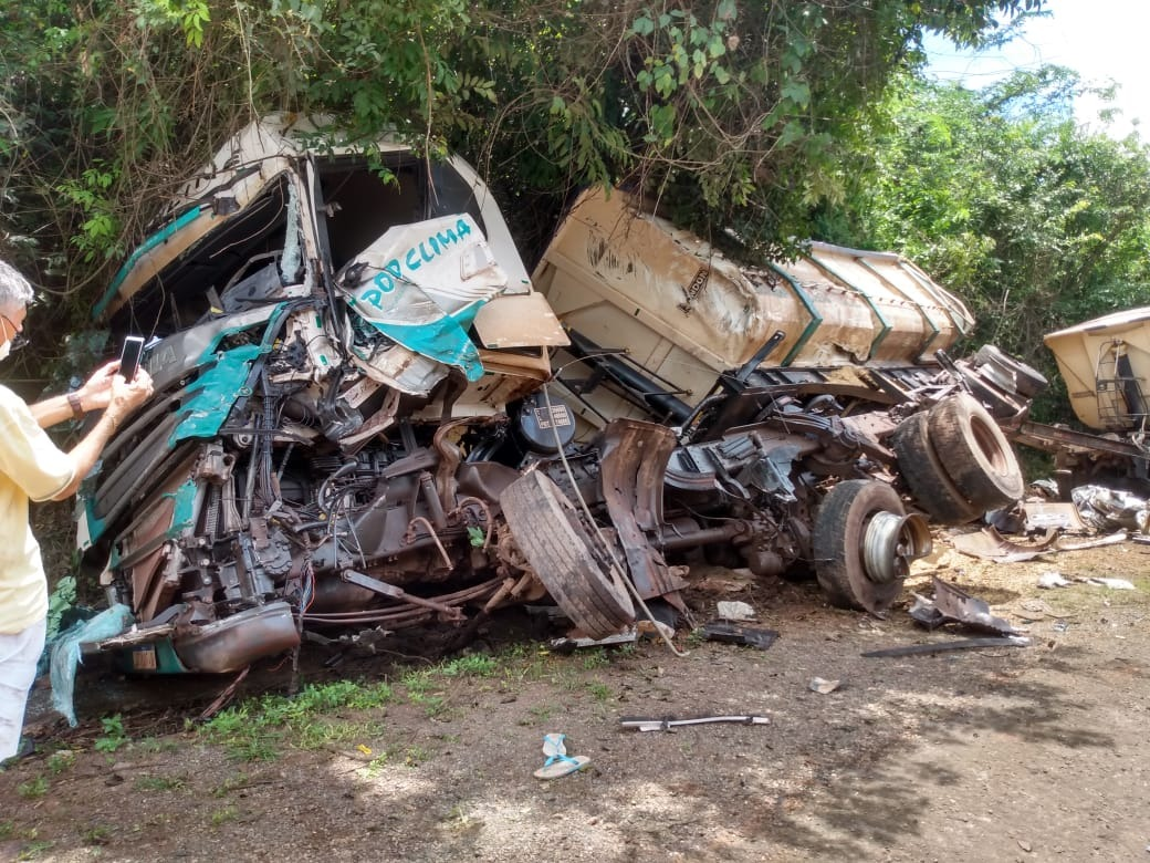 Caminhoneiro de Santa Fé fica ferido após colisão entre duas carretas