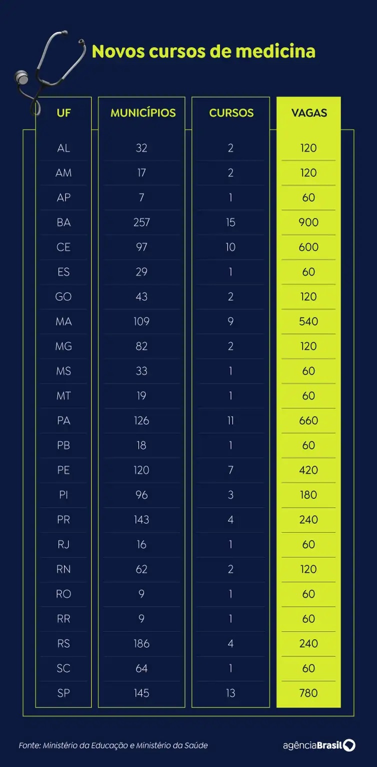 Governo anuncia 1.719 municípios aptos a receber 95 cursos de medicina