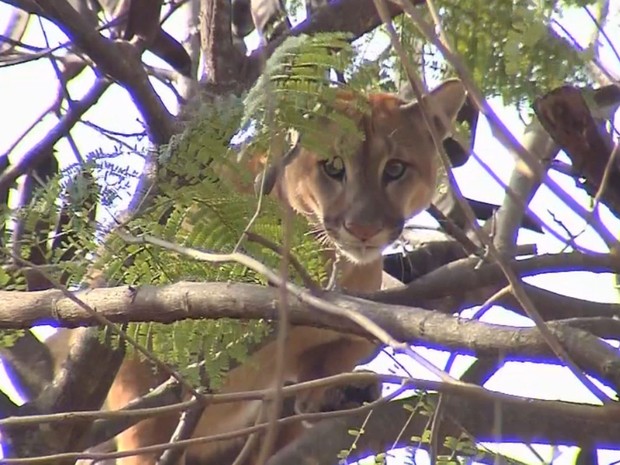 Onça é encontrada em cima de árvore em bairro rural