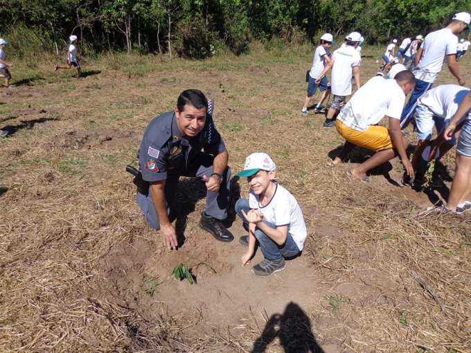 Foram plantadas 200 mudas para resgatar a mata ciliar do Ribeirão Santa Rita