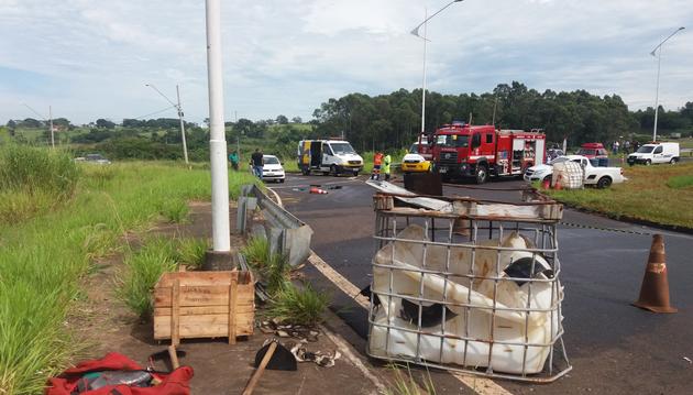 Colicloreto de alumínio caiu de caminhão no trevo de acesso a Rio Preto