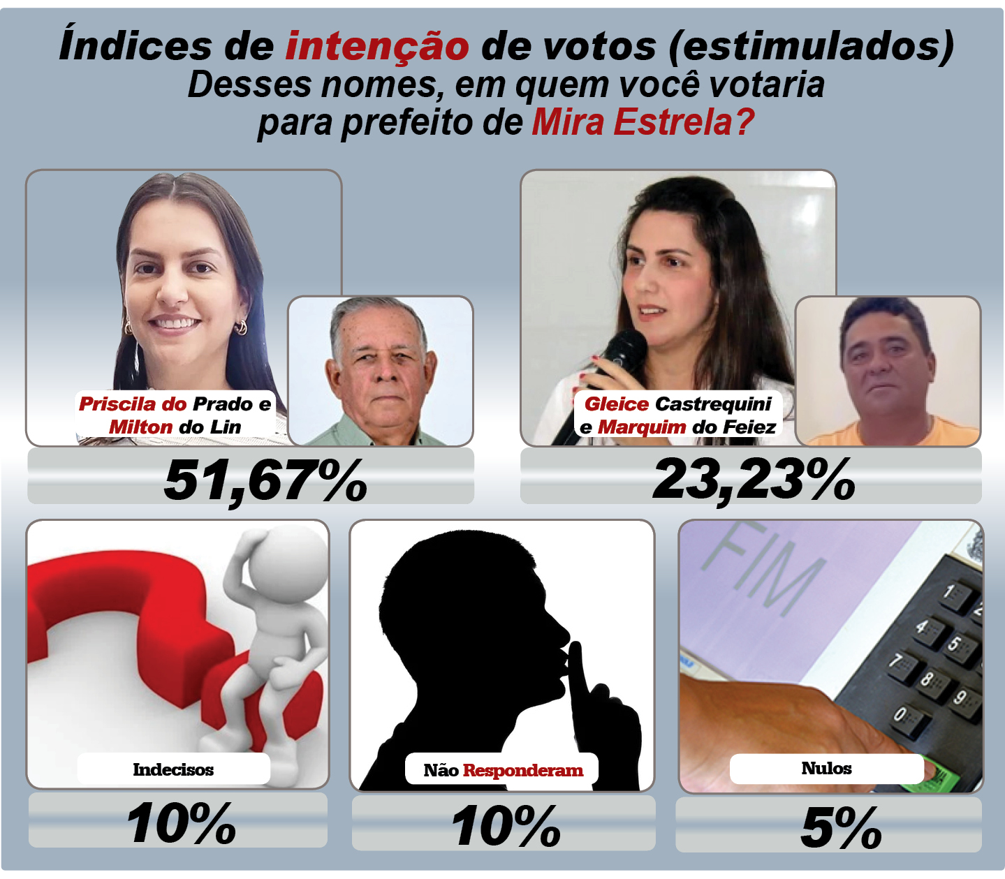 Mira Estrela: Priscilla tem 51% das intenções de votos e Gleice 23%