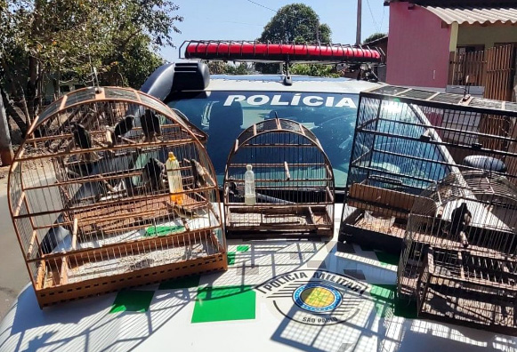 Polícia Ambiental liberta 9 aves mantidas em cativeiro
