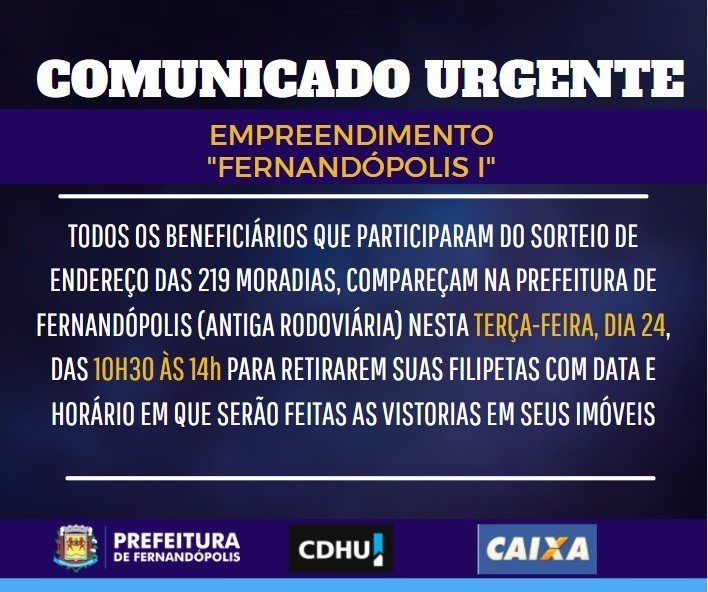 Beneficiários do Fernandópolis I’ devem regularizar documentação