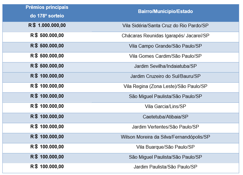No total foram sorteados 655 prêmios que somam R$ 6,7 milhões