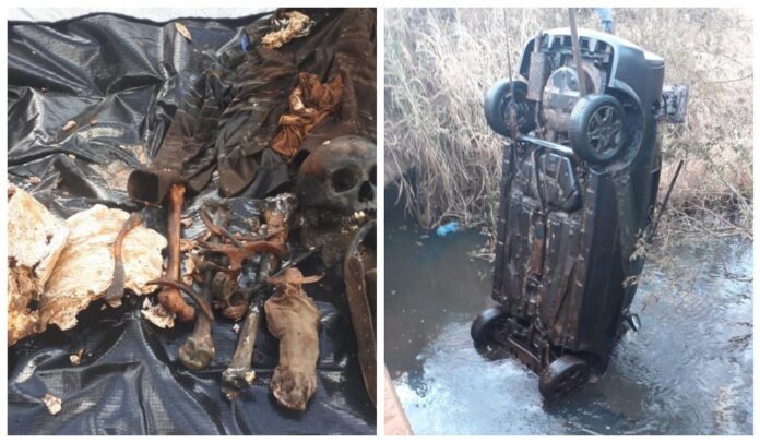 Carro encontrado em rio com ossada humana desafia investigação