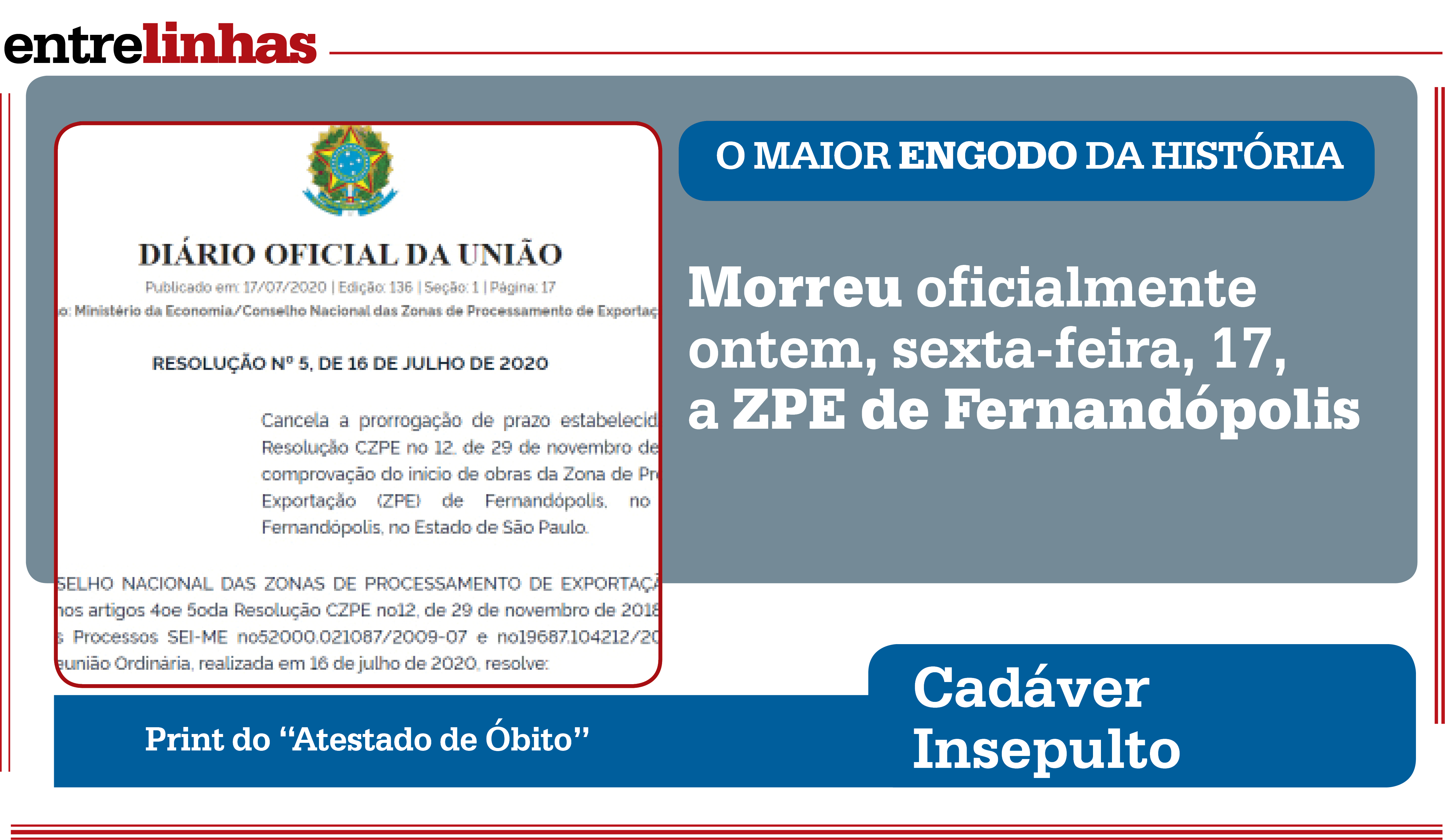 Morreu oficialmente ontem, sexta-feira, 17, a ZPE de Fernandópolis