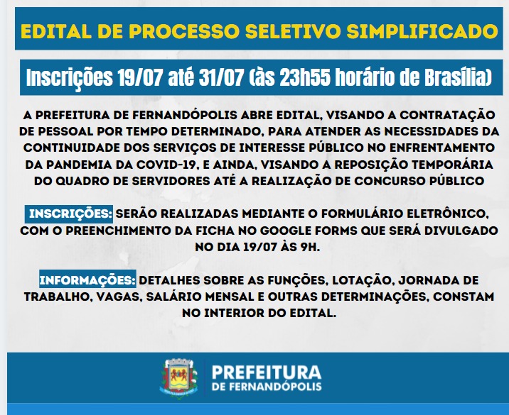 Prefeitura abre processo seletivo simplificado na próxima semana