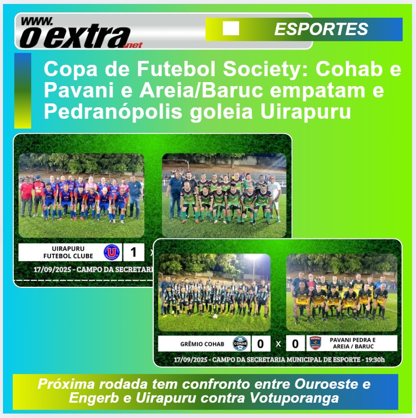 Cohab e Pavani e Areia/Baruc empatam e Pedranópolis goleia Uirapuru