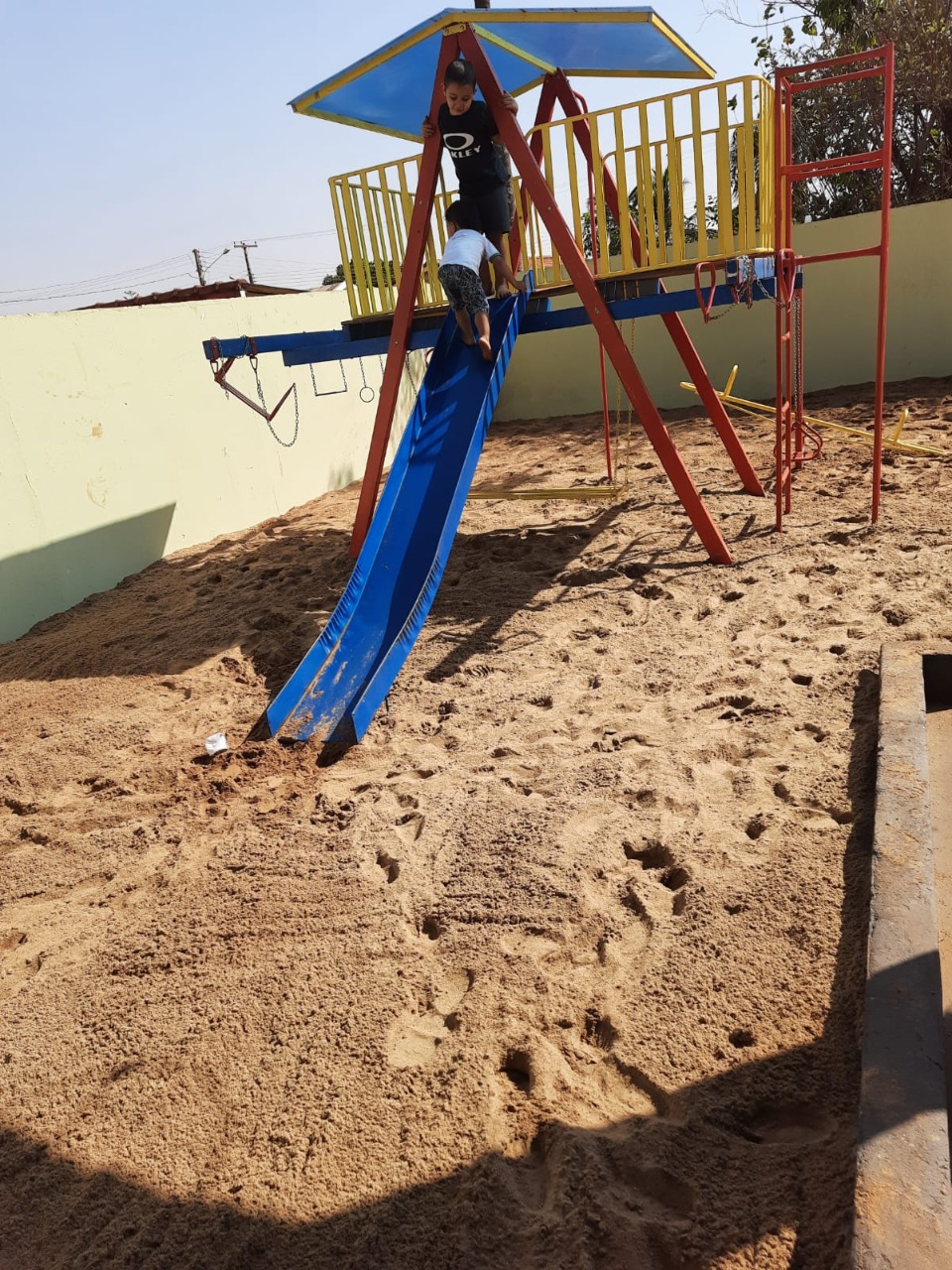 Os equipamentos foram restaurados e o local ganhou uma nova caixa de areia