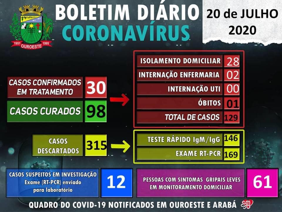 Ouroeste ultrapassa os 100 casos de coronavírus