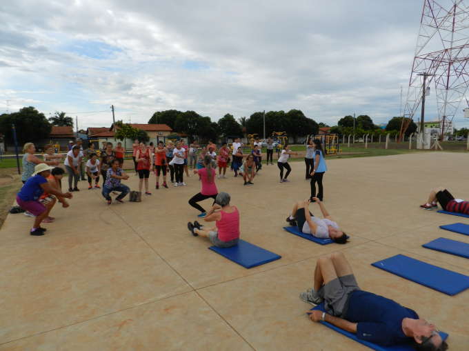 A aula de pilates foi ministrada pela agente comunitária Lucélia
