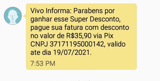Se passando pela Vivo, golpistas enviam mensagens oferecendo descontos