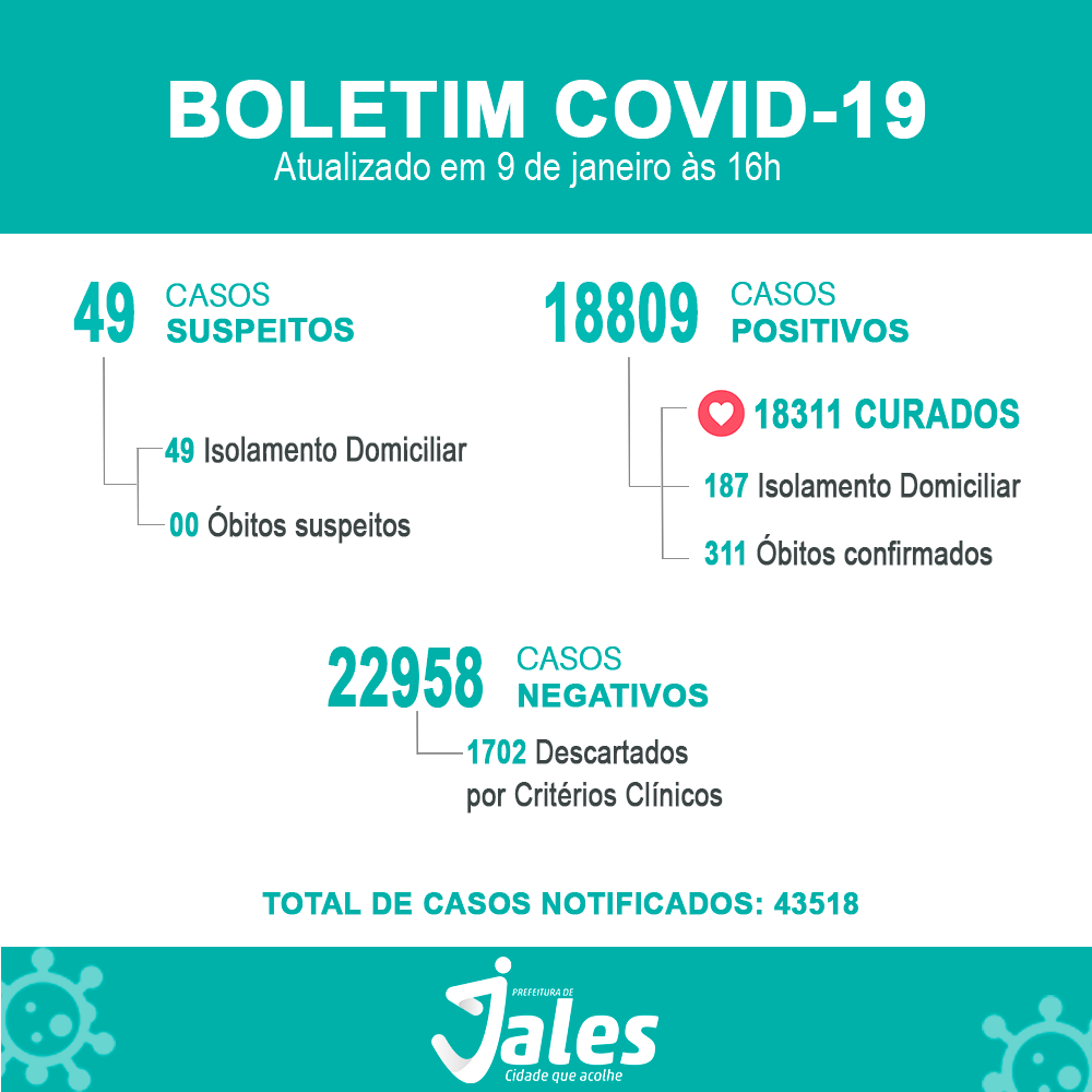 Jales registrou quase 800 casos e 7 óbitos por Covid-19 em janeiro