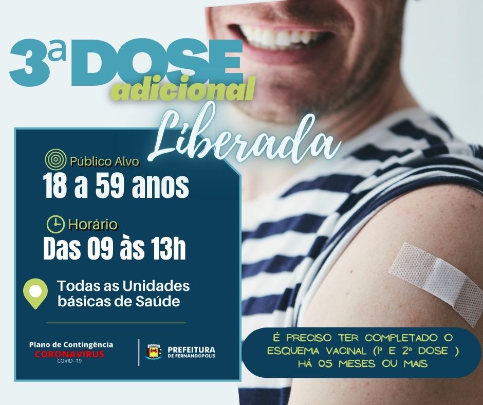 Fernandópolis começa vacinar público de 18 a 59 anos com 3ª dose