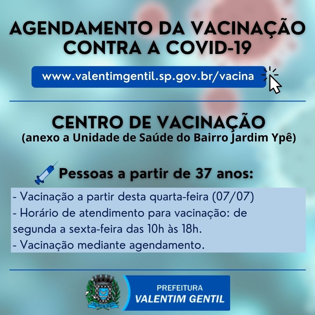 Município abre agenda para pessoas a partir de 37 anos tomarem 1ª dose